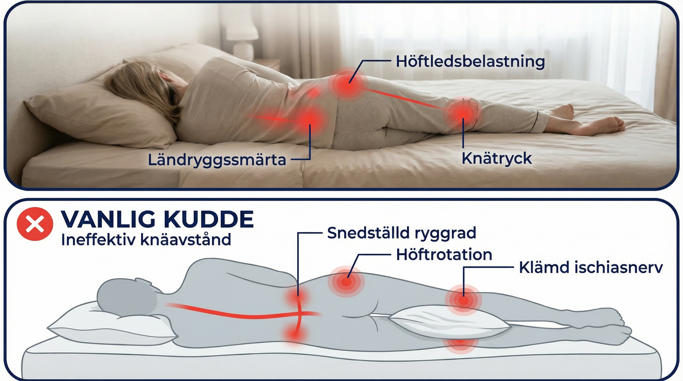 Ja, för många som sover på sidan gör en knäkudde stor skillnad. Den hjälper hålla höfter och rygg i en mer neutral position, vilket kan minska morgonstelhet.