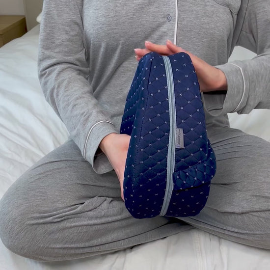 Det är precis därför knäkudden har en rem. Den håller kudden säkert på plats mellan benen även när du byter position eller rullar runt under natten.